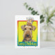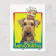 Feiern Sie einen Geburtstag mit dieser skurrilen Airedale Dog Grußkarte. Mit einem Kuchen auf dem Kopf wird dieses Design sicher ein Lächeln und ein Giggles bringen! BTW, Dieses Design hat mehrere Versionen, mit verschiedenen Hintergrundfarben. Es gibt auch eine Einladung zu einer Party-Version.
