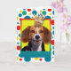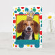 Feiern Sie einen Geburtstag mit dieser whimsical Beagle Dog Grußkarte. Mit einem Kuchen auf dem Kopf wird dieses Design sicher ein Lächeln und ein Giggles bringen! BTW, Dieses Design hat mehrere Versionen, mit verschiedenen Hintergrundfarben. Es gibt auch eine Einladung zu einer Party-Version.
