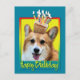 Feiern Sie einen Geburtstag mit dieser skurrilen Grußkarte des Corgi Hundes. Mit einem Kuchen auf dem Kopf wird dieses Design sicher ein Lächeln und ein Giggles bringen! BTW, Dieses Design hat mehrere Versionen, mit verschiedenen Hintergrundfarben. Es gibt auch eine Einladung zu einer Party-Version.