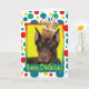 Feiern Sie einen Geburtstag mit dieser skurrilen Doberman Dog Grußkarte. Mit einem Kuchen auf dem Kopf wird dieses Design sicher ein Lächeln und ein Giggles bringen! BTW, Dieses Design hat mehrere Versionen, mit verschiedenen Hintergrundfarben. Es gibt auch eine Einladung zu einer Party-Version.