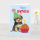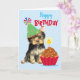 Herzlichen Glückwunsch zum Geburtstag mit diesem niedlichen Design, das ein lächelndes, Party tragendes Yorkshire Terrier Welpen mit einem Geburtstagskupchen enthält. Text kann leicht geändert werden; klicken Sie einfach auf Anpassen.