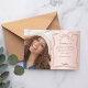 Ein Geburtstag Vielen Dank, Fotokarte. Eine Rose goldener Hintergrund. Mit braunem, handgezeichnet Bogen und Rahmen dekoriert. Personalisieren und fügen Sie Ihr Foto und danke Ihnen notieren.