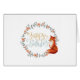 Das Design der Aquarellfarben zeichnet sich durch roten Fuchs und Blumenkranz mit "Happy Birthday" in modernen Schriften aus