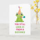 Ein niedlicher Frosch mit einem Geburtstagshut und einer lustigen Nachricht