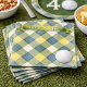 Celebrate a golfer in style with this golf theme design — a fun, sophisticated design guests will love. Featuring a plaid green, blue and gold background, a golf ball, banner and fun party font.
