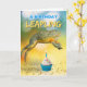 Ein Geburtstag, der sich schluchzt. Geburtstagskarte für jemanden, der am 29. Februar einen Leap Year Geburtstag feiert. Digitale Illustration mit einem farbenfrohen Frosch, der über einem Geburtstagskuchen sprang, umgeben von goldenen Konfetti. Art, Bild und Vers Copyright © Shoaff Ballanger Studios, 2025.