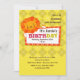 Ein niedlicher Löwe hält ein Marquee mit dem Wort "Geburtstag" vorgedruckt. Der Hintergrund ist eine gelbe und goldene Raute. Süße für jeden Juvenilen Feier.