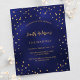 Eine Geburtstagsfeier für ihn und sie. Ein marineblau mit goldenen Sternen dekorierter Hintergrund mit Imitaten. Die blaue Farbe ist ungleichmäßig. Personalisieren und fügen Sie einen Namen und Party-Details hinzu. Golden farbiger Text. Zurück: marineblau Hintergrund und goldene Sterne. 1 Blatt = 1 Einladung mit Druckkante bis Kante.