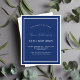 Bitte beachten Sie, dass diese Einladung auf Flyer Papier und sehr dünn ist. Umschläge sind nicht enthalten. Für dickere Einladungen (gleiche Gestaltung) besuchen Sie bitte unseren Shop. Modernes, elegantes und einladendes Hotel. Ein marineblau mit weißen Rahmen dekorierter Hintergrund. Personalisieren und fügen Sie einen Namen und Details. Weißer Text.