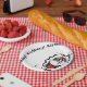 Ein Festteller mit einer Drehung. Handgezeichnet Design. Schwarz, rot, weiß, grau. Der Text ist anpassbar.