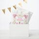 This birthday plate favor bag features an elegant gold frame, a beautiful princess with blonde hair and a pink dress, flowers and a balloon. This is perfect for a birthday party.