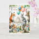 Feiern Sie einen skurrilen Geburtstag mit dieser "Woodland Birthday Party"-Illustration, in der Waldtiere wie Fuchs, Kaninchen, Hirsche und Eichhörnchen in einem sanften Aquarell-Stil dargestellt werden.