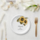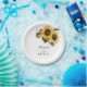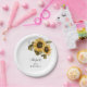 Boho Geburtstagsfeier Papier Platte mit Aquarellbild von gelben Sonnenblumen mit dem Atem des Babys.