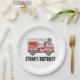 Niedliches rotes Feuerwehrauto-Kindergeburtsplatte für Geburtstagsparty.