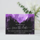 Eine gmädchenhafte und trendige Save the Date-Karte für eine 18. Geburtstagsfeier (oder jedes Alter). Schwarzer Hintergrund mit lila Imitaten Glitzer Tropfen, Glitzern und Ballons. Personalisieren und fügen Sie Datum und Name/Alter hinzu. Der Text: Save the Date ist mit einem großen angesagten, handgeschriebenen Stilskript geschrieben.