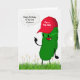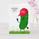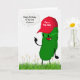 Niedliches grünes Hecht mit grüner Brille und roter Kappenkappe im Gras mit Gänseblümchen. Alle Texte können bearbeitet werden.