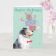 Herzlichen Glückwunsch zum Geburtstag mit diesem niedlichen Design mit einem lächelnden australischen Schäferhund, der einen Stapel Geburtstagsgeschenke auf seiner Nase ausbalanciert.Text kann leicht geändert werden; klicken Sie einfach auf Anpassungstaste.