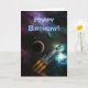 Geburtstagskarte, Raketenschiff und Weltraumszene. Passen Sie sich mit Ihren eigenen Nachrichten an.
