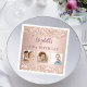 Eine Serviette für eine mädchenhafte und glamouröse 50. Geburtstagsfeier (oder jedes Alter). Eine Rose goldener Hintergrund mit Konfetti dekoriert. Der Text: Der Name ist in dunklem Rose Gold geschrieben, mit einem großen, modernen Schriftsatz. Personalisieren und geben Sie den Namen, 50 und 3 Ihrer eigenen Fotos des Geburtstagsmädchens, ihrer Familie, Freunden oder Haustiere.