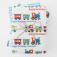 Cute trains chug along this wrapping paper which can be customized with name and age. The designs feature red, blue, and yellow trains in a cartoony style. Matches perfectly with our Cute Train Birthday Collection. Please make sure to double check your personalization!
