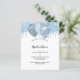 Ein weißer Hintergrund. Dekoriert mit hellblauen Imitate Glitzer Tropfen, Farbe Tropflook und Ballons. Personalisieren und einen Namen und Party Details. 1 Blatt = 1 Einladung mit Druckkante bis Kante.