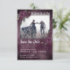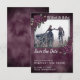 Dunkelschöne Save the Date Karte mit Till Death Do Us Part Sprichwort, dunkelvioletten Rose und einem leicht lila Aquarellhintergrund. Skripttypografie. Personalisieren Sie mit Ihrem eigenen Foto.