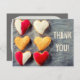 Ce carte de remerciements à panneau plat est une grande manière de dire que les mercis des cadeaux du jour de valentine, pâtisseries ou de l'aide de font des volontaires cuire au four de vente. Les caractéristiques de conception qu'une illustration de photo des biscuits en forme de coeur faits maison sur un fond d'ardoise avec les mots "Merci" a imprimées sur l'avant. Le dos de la carte a un secteur gris vide qu'il faut que vous écriviez votre propre message ou vous pouvez choisir le bouton de "personnaliser" et faire imprimer votre message sur ces cartes.