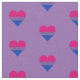 Stoffe mit Herzdesign in den Farben Bisexualität; Rosa, lila und blaue Streifen Bi-Stolz-Fahne, Regenbogen-Liebe Bi Stolz-Design auf lila Hintergrund
