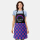 Schürze von Frauen mit einem Bild einer Bisexualität-Stolperflagge und einem Regenbogen und sich wiederholender nahtloser Blume; rosa, lila und blau Design auf schwarzem Hintergrund, eine blaue Variante, mit einer anpassbaren Textvorlage für Ihren eigenen Namen oder Ihre eigene Nachricht