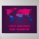 Wertposter mit Bisexualitäts-Regenbogenstreifen Weltkarte, Bisexualitäts-Stolz Design auf lila Hintergrund, Lasst uns die Welt verändern Vorlagentext, von pinkbrickroad