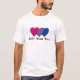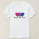 T-shirt de base personnalisable avec design de coeurs dans les couleurs de la bisexualité; drapeau de fierté rose, violet et bleu rayures, arc-en-ciel design d'amour, avec texte personnalisable
