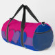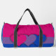 Duffle Bag with bisexuality pride flag with pink, purple and blue stripes, striped pattern design with hearts, bi pride design