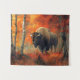 Ein faszinierendes Design mit einem majestätischen Bison, stehend inmitten der lebhaften Farben eines Herbstwaldes. Die reichen, erdigen Töne und die faszinierenden Details der Szene rufen ein Gefühl von Wildnis und Ruhe hervor, das es zu einer schönen Hommage an die saisonale Schönheit der Natur macht.