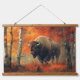 Bison im Herbstwald Artwork Wandteppich Mit Holzrahmen
