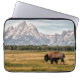 Dieses Foto kennzeichnet Wege eines alleine wilde Bisons vor der Teton Gebirgsstrecke in Jackson Hole, Wyoming.