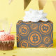 Lassen Sie Ihr Geschenk wie eine Million Dollar aussehen, wenn Sie es in Bitcoin-Papier verpacken. Diese Geschenkpackung hat ein rundes Muster mit orangefarbenen Bitcoin-Symbolen Set vor einem kohlegrauen Hintergrund.