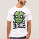 Un design de T-shirt audacieux et enjoué avec le slogan "Bite Me !" en lettres rugueuses et affreuses. Accompagnant le texte est un zombie de style dessin animé avec un râteau de toothy. Cette conception légère capture l'esprit ludique et humoristique du podcast Apocalypse Survival for the Average Guy, parfait pour ceux qui aiment leur apocalypse avec un côté d'humour.