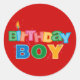 Spaß-Design für den Geburtstagsjungen mit farbenfrohen Texten, die sagen, BIRTHDAY BOY, eine glückliche Geburtstagskandle und Bänder. PinkInkArt Original!