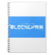 Eine große Textnachricht auf einem digitalen, hellblauen Bildschirm mit einem starken Verzerrungsglitch fx: Blockchain.