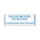 Nicht an dieser Adresse Briefmarke. Bequeme Briefmarke mit höflicher Aufforderung an die Post, zum Absender zurückzukehren, jede Mail für einen früheren Bewohner. Der Wortlaut auf der Briefmarke lautet "BITTE RÜCKKEHR AN SENDER - Empfänger hat sich bewegt" in klaren und modernen Typografie. Egal ob Sie Zuhause bewegen oder einen großen Business-Mail-Raum haben, diese Briefmarke sind bequem zu bedienen und eine große Zeitersparnis! Die Vorlage ist für Sie Set, um die Formulierung zu bearbeiten, wenn Sie möchten.