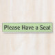 Dieses grundlegende Design enthält die Meldung "Bitte haben Sie Platz". Dies könnte in einem Empfang oder einem gewartet Raum genutzt werden, um Besucher, Kunden oder Patienten darüber zu informieren, dass sie in Kürze unterstützt werden und in der Zwischenzeit einen Platz einnehmen sollten.