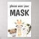 Bitte erinnern Sie alle daran, mit diesem bezaubernden Tier eine Maske zu tragen. Dieses Schild ist ideal für Büros, Unternehmen, Salons, echte Anwesen-Shows und Schulen.