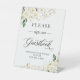 Bitte unterschreiben Sie unser Gästebuch White Rose Gold Floral Pedestal Sign. Die Standardgröße beträgt 8 x 10 Zoll, Sie können sie in andere Größen ändern. Für weitere Anpassungen verwenden Sie bitte das Design-Tool von Zazzle, um diese Vorlage zu ändern.