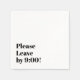 Immer sicher, zum Lachen, diese einfache und humorvolle Botschaft kommt genau zu dem Punkt: "Bitte Verlass um 9:00 Uhr!" Dies ist ein vollständig bearbeitbares Design: Sie können die Zeit, Ihre Farben, Schriftart... ändern oder sogar die Nachricht selbst! Viel Spaß!
