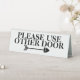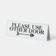 Ideal für Geschäftsreisende und Geschäftsreisende. Ein weißer Hintergrund hat einen fett schwarzen Schriftart, der auf "Bitte andere Tür benutzen" steht, mit der Silhouette eines Pfeils, der in die Richtung zeigt, zu gehen. Personalisieren Sie den Wortlaut nach Ihren Wünschen und fühlen Sie sich frei, eine Hintergrundfarbe hinzuzufügen und die Farbe, den Stil und die Größe des Schriftartes zu ändern, um Ihre geschäftlichen Anforderungen zu Anzug.