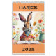 Des images de type dessin de lièvres représentant chaque mois de 2025. Images pertinentes pour le mois, c'est-à-dire Coeurs rouges pour la Saint Valentin en février, célébration du 4 juillet pour juillet, Action de grâces pour novembre, Arbre de Noël pour décembre, etc.