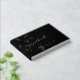 Ein elegantes und raffiniertes Schwarz-Silber-Hochzeitsgast-Gästebuch mit schwarzem Hintergrund mit klassischen schwarzen Akanthus-Blattdetails mit Silberfolie-Kalligraphie mit Ihren Namen auf der Vorderseite, Wirbelsäule und Rückseite in einem modernen san Serif-Schriftart. Das Buch auf der Vorderseite liest "Gästebuch" und mit Ihren Namen unten und eine getauschte "Hochzeit", in Gold-Skript. Die Rückseite hat das gleiche Akanthus-Blattdetails mit Ihren Namen und Hochzeitstag in schimmernder Goldfolie.