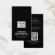 Schwarz oder benutzerdefiniert, modernes, berufliches, vertikales Visitenkartendesign mit Vorlagenfeldern für Name, Firmenname/Firmentitel, Logo (Foto oder andere Grafik), QR-Code und Kontaktinformationen einschließlich Social Media Icons. Ändern Sie die Hintergrundfarbe, verschieben und verändern Sie Elemente mit dem Anpassungstool.