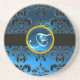 BLACK and BLUE DAMASK Saphir Monogramm Sandstein Untersetzer