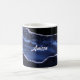 Midnight blue marble, lined with silver glitter, on a black background makes an eye-catching and dramatic mug that's sure to be a favorite.